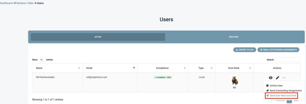 - Individually: Under “Users” , you can click on the 3 dots for more actions and you can send the welcome email to that individual user there.